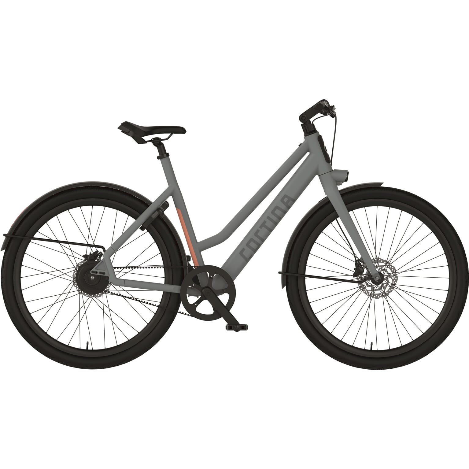 Cortina E-Lett is een elektrische damesfiets Mat Grijs voor de liefhebber die wil dat alles klopt! Wanneer je deze superstrakke e-bike ziet, valt gelijk op dat over alles goed is nagedacht